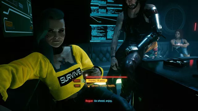 – Khi gặp Panam ở bar, hãy chọn “[Drink] To your ride” -> “Maybe we get just one room?” -> “Next exactly what I meant” -> Cô ấy sẽ đồng ý thuê phòng cùng bạn, nhưng sẽ không có gì xảy ra cả. Hãy ngủ để kết thúc nhiệm vụ.