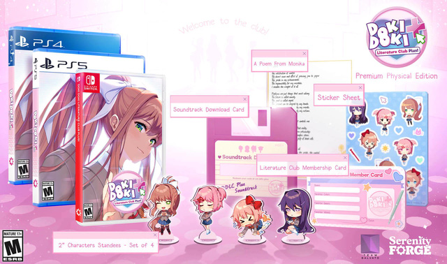 Tuyệt vời hơn, Doki Doki Literature Club Plus sẽ phát hành ào ngày 30 tháng 6 cho Nintendo Switch, PC, PS4, PS5 và Xbox One, với một phiên bản vật lý (bản đĩa) sẽ được bán giới hạn iện đang được đặt hàng trước trên trang web của nhà xuất bản Serenity Forge với giá 29,99 USD. Phiên bản giới hạn bao gồm bốn mô hình các nhân vật trong game, một tờ gồm 17 sticker, toàn bộ nhạc nền trong game và thẻ thành viên Doki Doki Literature Club.