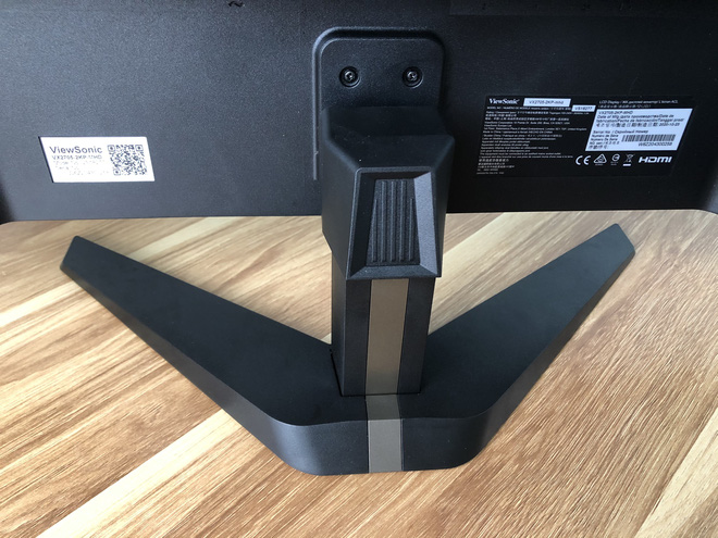 Về ngoại hình VX2705-2KP-mhd khá… cổ điển. Viền màn hình tương đối dày, các nút tùy chỉnh vật lý được bố trí phía bên dưới. Chân đế chữ V cố định không thay đổi được chiều cao hay độ nghiêng. Vì vậy có lẽ đây là mẫu màn hình theo đúng tiêu chí “tốt gỗ hơn tốt nước sơn”.