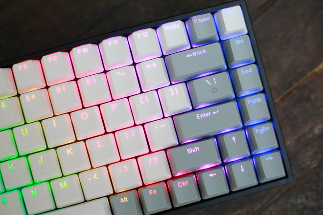 E-Dra EK384 RGB được trang bị hệt thống LED RGB đổi màu rất đẹp và sáng trên nền keycap màu trắng – xám bằng ABS xuyên LED.