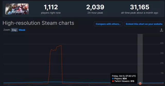 Tuy nhiên sự thật đã không như dự đoán. Chỉ sau 1 tháng ra mắt, số lượng người chơi Marvel’s Avenger trên PC giảm từ 30.000 xuống xấp xỉ 1.000. Ngoài ra, theo báo CBR.com cho biết, trò chơi này đã khiến cho Square Enix lỗ 63 triệu USD.